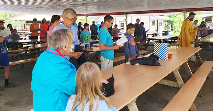 Thank you Father Paul Varchola West for leading us in Divine Liturgy at Knoebels Park to kick off Byzantine Family Day. Father Paul Varchola West, Prof. Joseph Ferenchick - director of music and Pan’i Alissa West – cantor, all made the long trip from Our Lady of Perpetual Help in Levittown, PA.