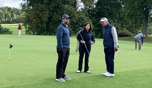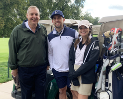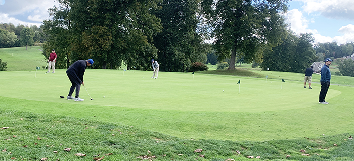 Seven oaks golf pro Jason Hammel with some of the golfers warming up for the Scramble.