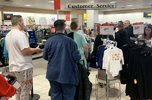 GCU employee Gina Spickerman checking out some boots.