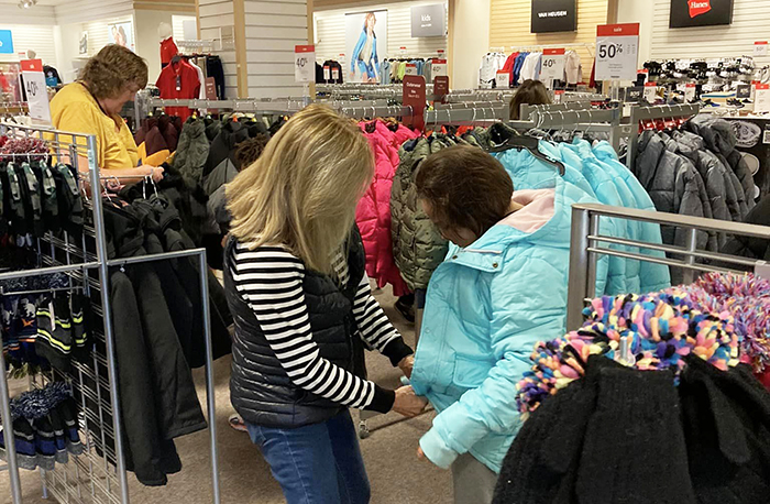 GCU member Laura Seech looking at coats.