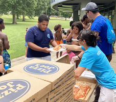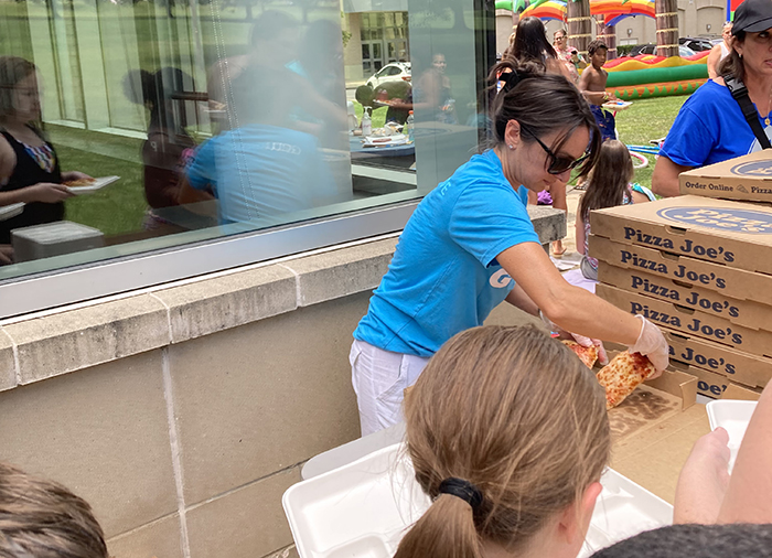 On Friday August 4, 2023, GCU donated and served lunch to over 50 Pre-K through 12th grade students at The Center in Midland. This was the end of summer bash for all the kids. The center had a variety of activities set up from bounce houses to splash pads. GCU served Pizza Joes pizza and snacks. It was a great afternoon to serve the community!